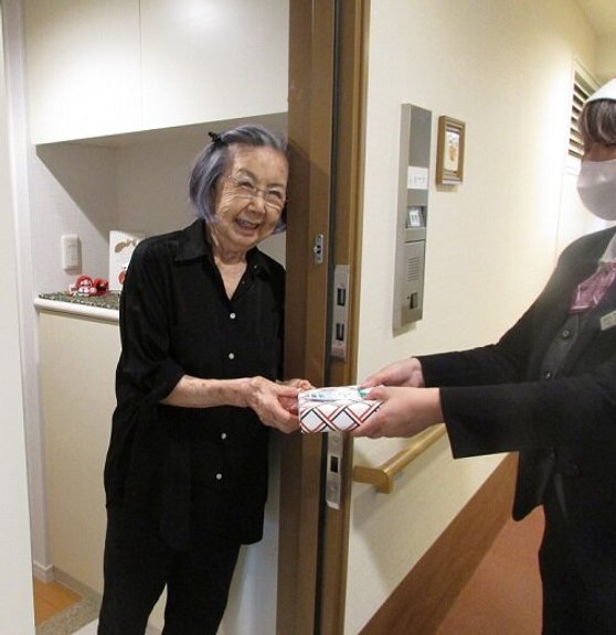 アイビーコートは年に数回イベントとしてプレゼント🎁をお渡ししています。スタッフはお部屋の前で皆様のリアクションをワクワクしながら待っています。 わ~い!!素敵な笑顔をいただき幸せな気分にさせてもらっています(*^-^*)