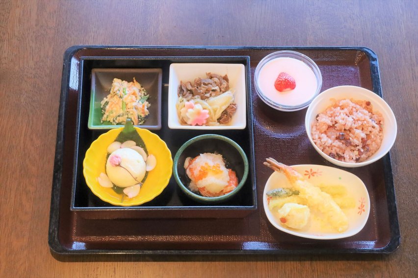 春の魚として代表的なさくら鱒や黒毛和牛、桜エビ、赤飯の大納言小豆など、春に開かれる開園際にふさわしい食材を選びました。