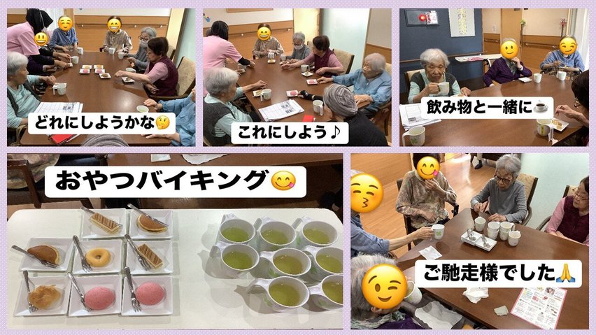 利用者皆さんがおやつを召し上がりながら談笑される素敵な時間🥰