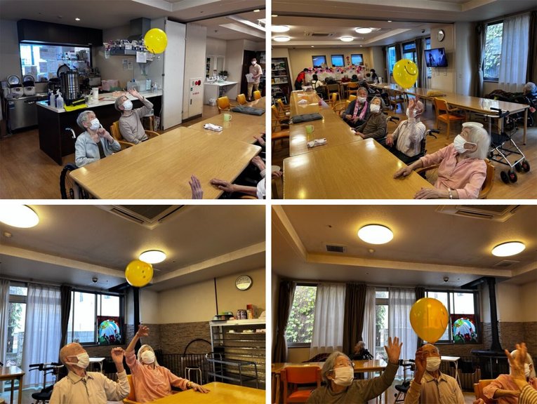 皆さん「パス!」と大きな声をあげて上手にリレーができましたね!中には「私、昔はバレー部だったのよ、楽しかったわ」とお話をしていただけました☺️