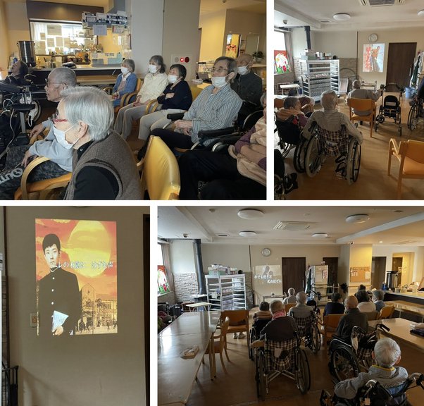 本日はプロジェクターを使って、大画面でのカラオケを楽しみました。