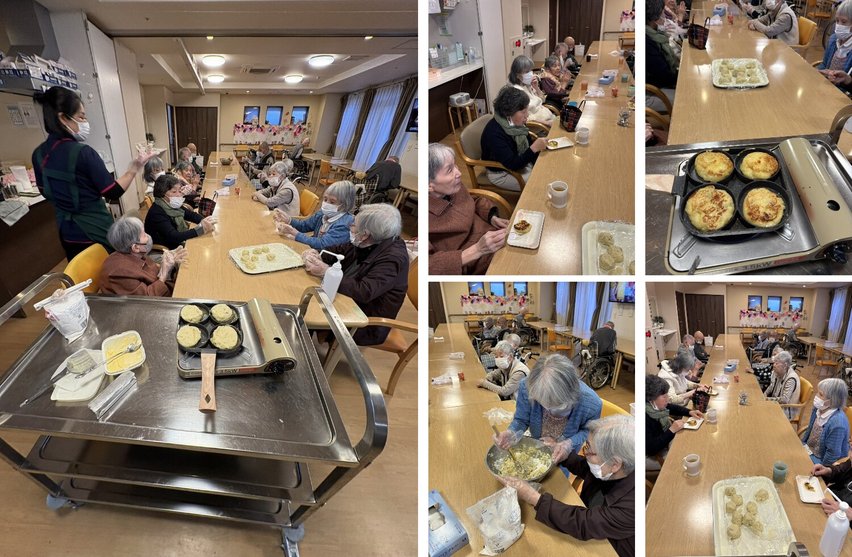 おやつレクでさつまいも🍠のホットケーキを作って頂きました