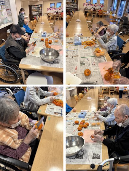 長村様の家族様から頂いた柿の皮剥きを行いました😊