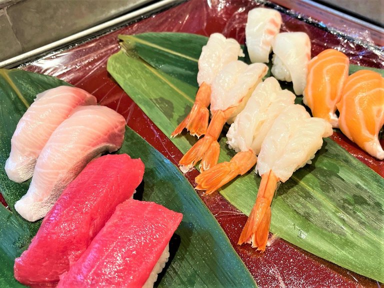 今回のお寿司バイキングのメニューは、中トロ、穴子、かんぱち、いくら、鯛、赤海老でした。