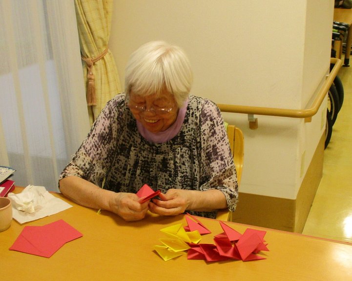 お客様と画用紙で紅葉づくりをしました。
