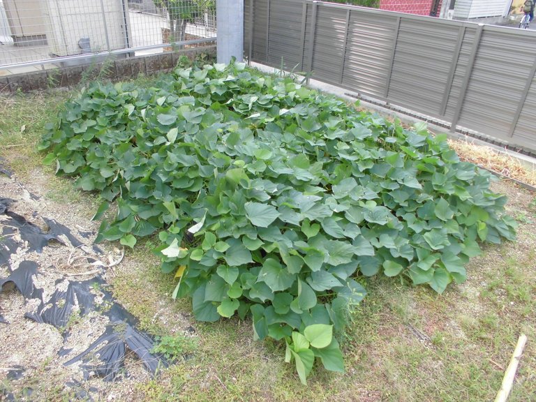何が植えられているかわかりますか?正解はサツマイモです。そろそろ収穫をしようと思います。今年の大きさはどうかな!?