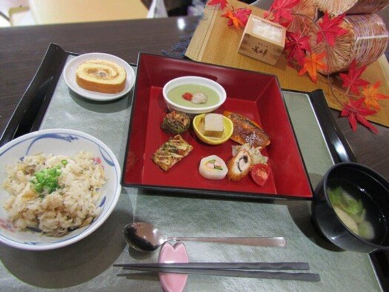 ・鮭の柚子味噌焼き ・きのこの炊き込みご飯 ・鶏団子の野菜スープ ・栗のロールケーキ「きのこの炊き込みご飯なんて、秋を感じられていいね!!」「栗のロールケーキが優しい甘さで、とても美味しかったわ!」と、秋の味覚を楽しんでいらっしゃいました。