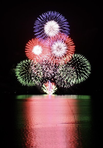 ですが曇天で雲が低く、雲の中へ花火が入って
