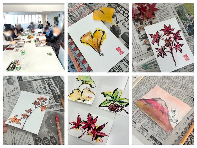 今年最後の教室なので、お年賀用の作品を描く方も♪