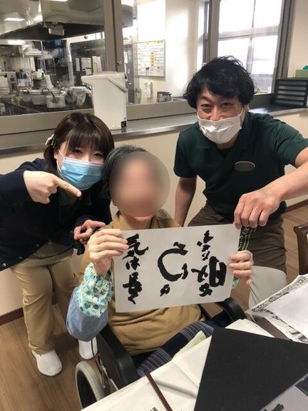12月の習字のレクリエーションでは、来年の抱負や好きな言葉を
