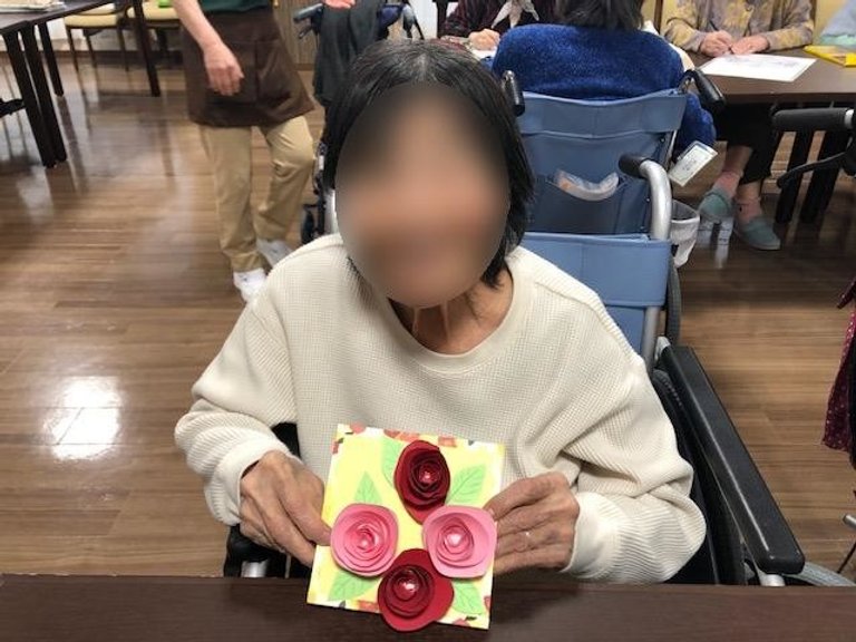 紙をクルクルと丸めて薔薇のお花に見立てる作業が