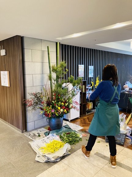館内にも早速正月飾りを作っていただきました!写真は、とても丁寧に飾りの調整をされている様子です✨