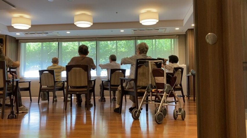 ラジオ体操の他に、椅子に座って行う健康体操を実施しております。