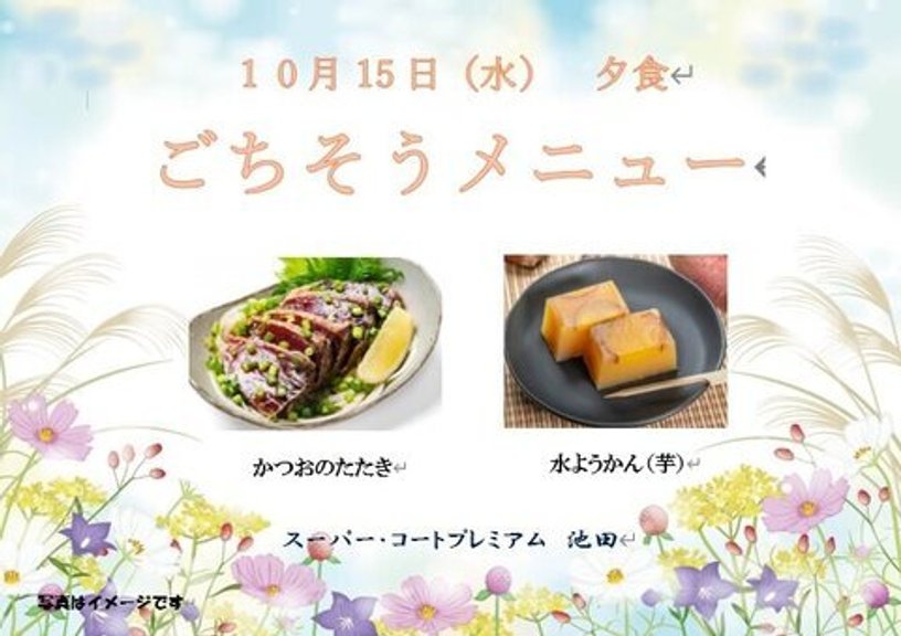 10/1~10/19の献立表!(^^)!