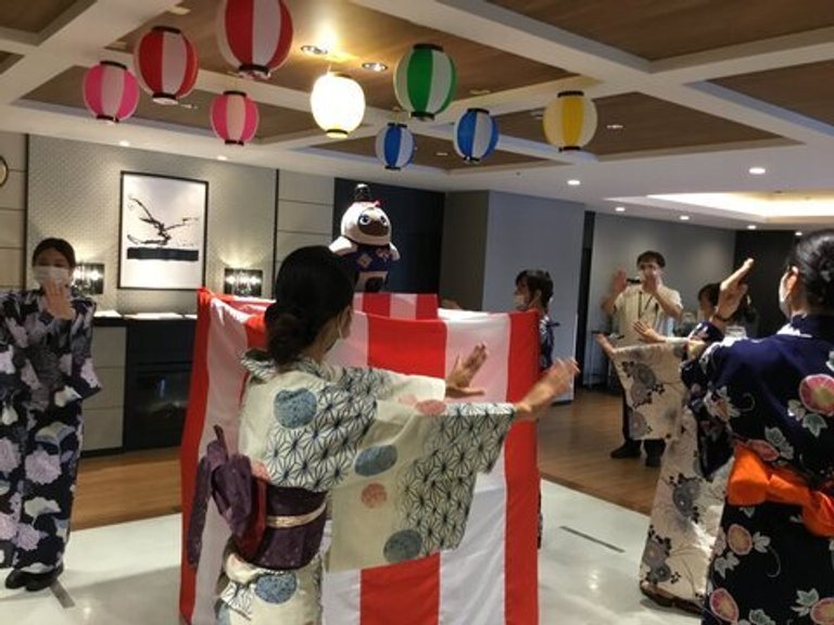 さらには午後からレストランにやぐらを立てて、みんなで盆踊りも行いました!