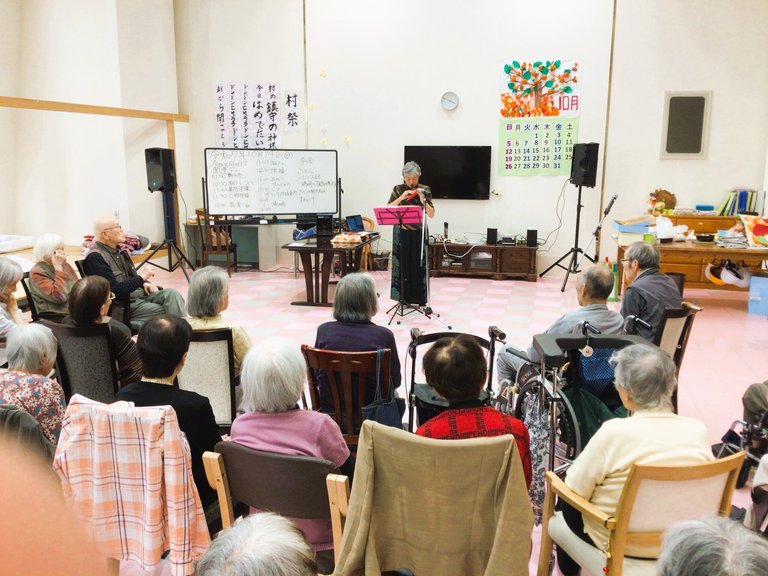 ホームでは、日々の暮らしの中に「心がほどける時間」 を大切にしています。本日は、ボランティア演奏家 “TERUYO”様 にお越しいただき、小鳥たちが会話を交わすような、秋の森をそっと歩いているような、澄んだ音色であるオカリナ。