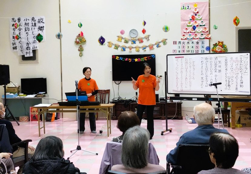 12月のお誕生日会をボランティアグループ「LaLaLa」様の歌と演奏でにぎやかに開催しました。