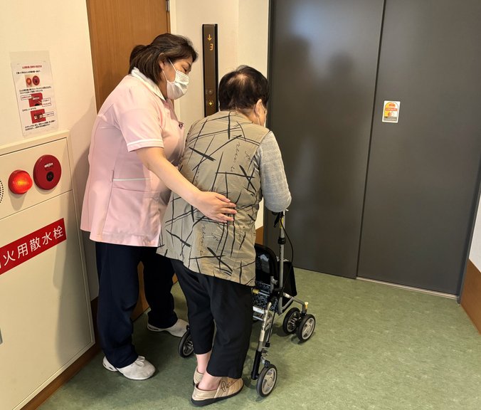 桜寿のさとでは、ご入居者様ひとり一人の身体状況に応じて、デイサービスに行くための準備や、ロビーまでの誘導・付添いも行いますので、お一人での準備や移動がご不安な方も、安心して過ごして頂けます。