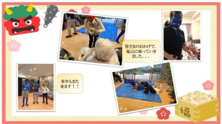 恵方巻でお腹がいっぱいになったので、午後は豆まきで鬼退治をいたしました。