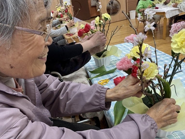 先日、卒園を控えた5歳児の園児の皆さんと一緒にフラワーアレンジメントを楽しんできました。