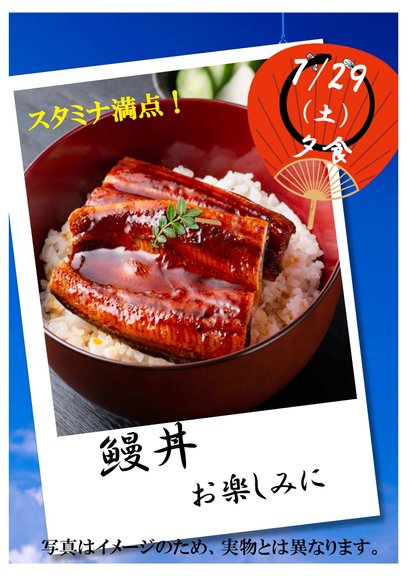 グランドマスト赤堤では、7月29日の夕食に「うな丼」をご提供させて頂きます。