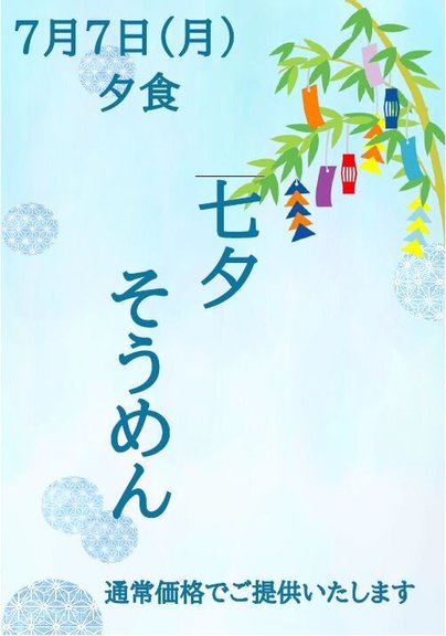 7月7日の七夕にちなんだイベント食事 「七夕そうめん」