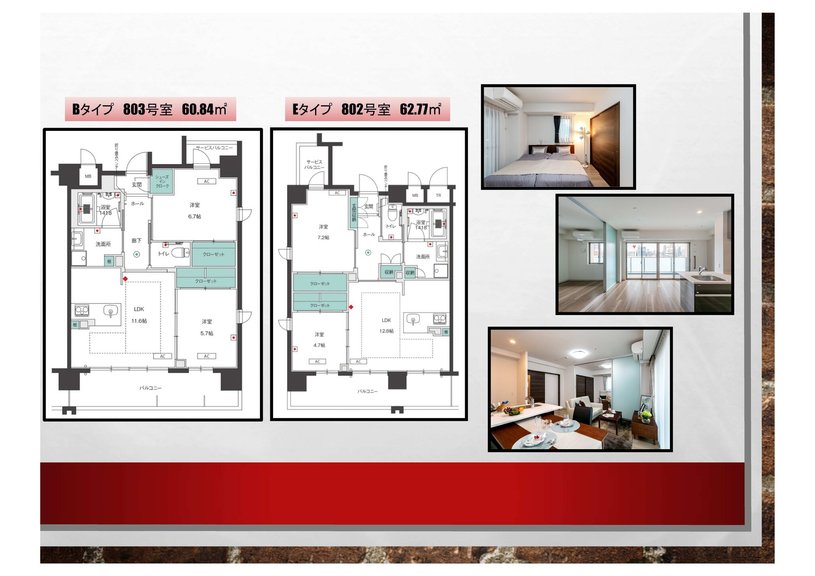 ・LDK11.6帖、洋室6.7帖、洋室5.7帖と各部屋が広いことはもちろん、バランスよく広さが確保されているので、寝室だけでなく、書斎や趣味の部屋としても利用できます!