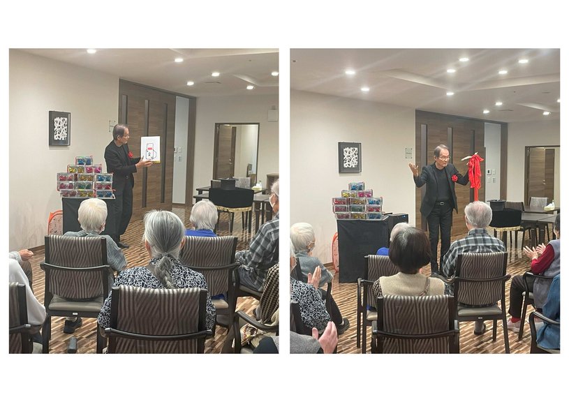 さて本日はご入居者様向けイベントとして、マジックショーを開催しました!普段なかなかじっくりと見る機会が無いので、一つ一つのマジックに皆様驚かれたり、楽しんだりと非常に盛り上がる時間でした!!