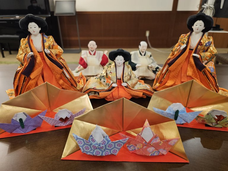 最後に金屏風もTVの画面で折り方を見ながら作り上げると「あらっ見事じゃない」と驚かれ、「早速飾るわ」と喜んでお部屋に持って帰られました。