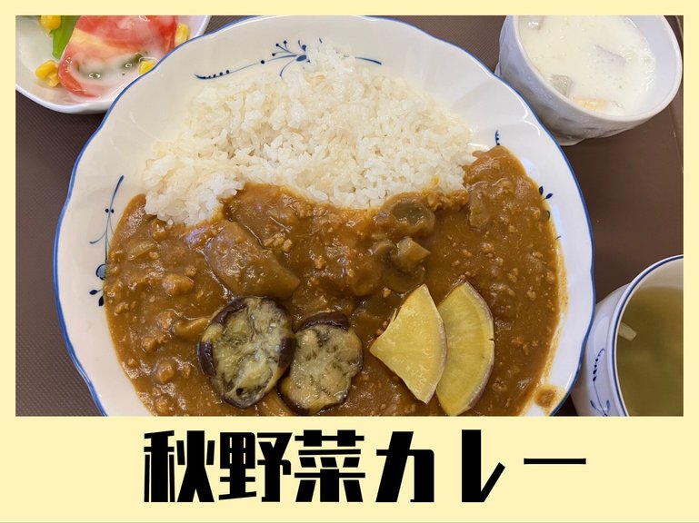 ・秋野菜カレー・サラダ・スープ・フルーツヨーグルト