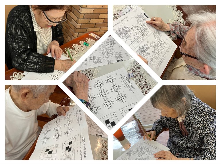 頭の体操で、言葉クイズや間違い探しをしました。