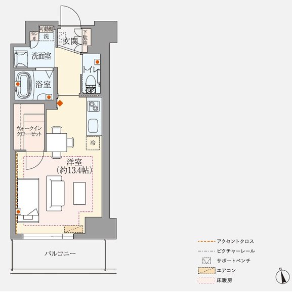 8階建ての7階南向き、ワンルーム(37.46㎡、Aタイプ)