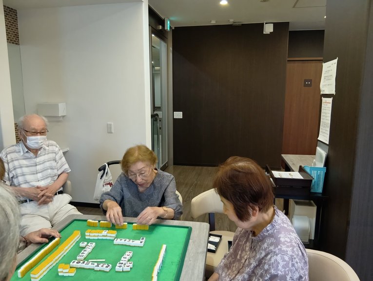 仲間と麻雀を楽しむ皆様の笑い声が響きます