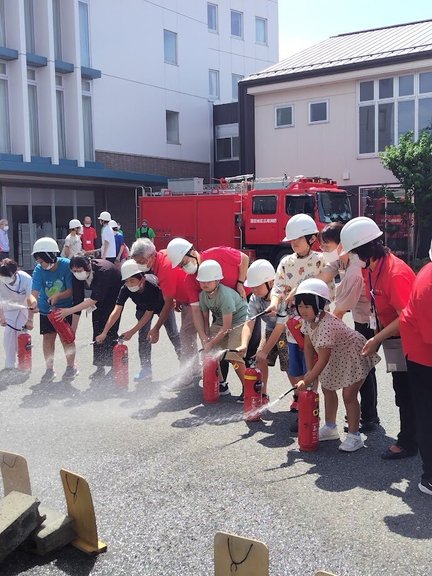 避難誘導、通報訓練、水消火器の