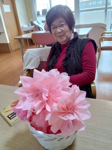 この日も、㋃の壁面作りをみんなで楽しみながら余ったお花紙で可愛らしいものが完成しました♪
