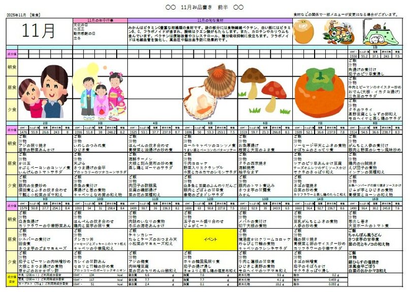 サービス付き高齢者向け住宅 やさしえ千渡 ☆11月前半のお食事☆