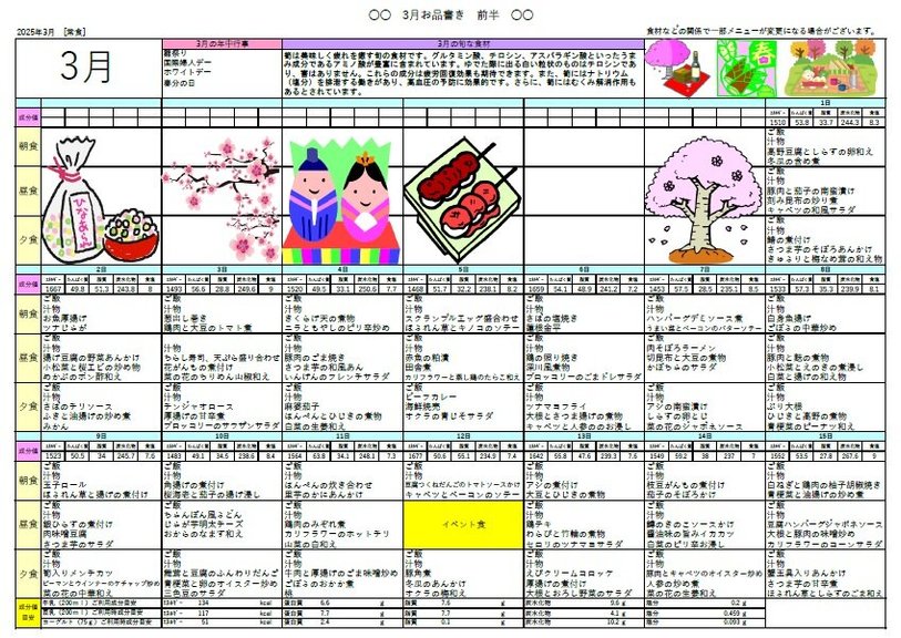 サービス付き高齢者向け住宅 やさしえ千渡 ☆3月前半のお食事☆
