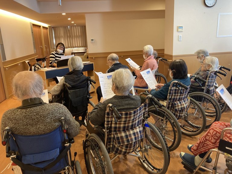 本日は2月度の「歌の会」です。講師の先生・時には入居者様のリクエスト曲を含め6~8曲程度歌います。この会は上手いも?下手も?関係なし!皆様毎回大きな声を出~~~す、いい機会としております。月に2回開催しております。施設見学でもご覧になれます。開催の日程は施設までお問合せ下さい。