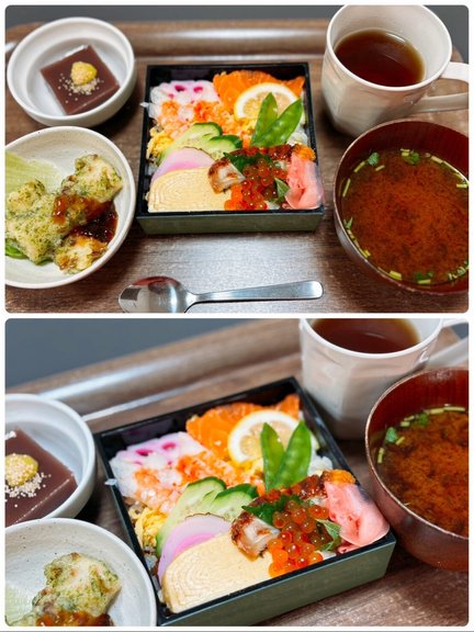 サーモンにイクラ、鰻ものっていて色鮮やかなちらし寿司に皆さんも「美味しそう」「どれから食べようかな?」と話をしながら食事されていました。