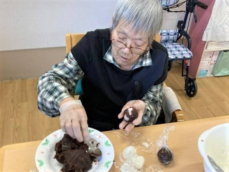 グループホームみんなの家・稲城長沼です。1階、2階合同で、おはぎを作りました。