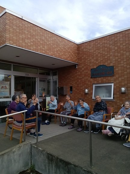 この日はとても温かく絶好の外気浴、皆様背筋を伸ばして太陽光をいっぱい浴びた日で、普段話せない方たちとの談話で