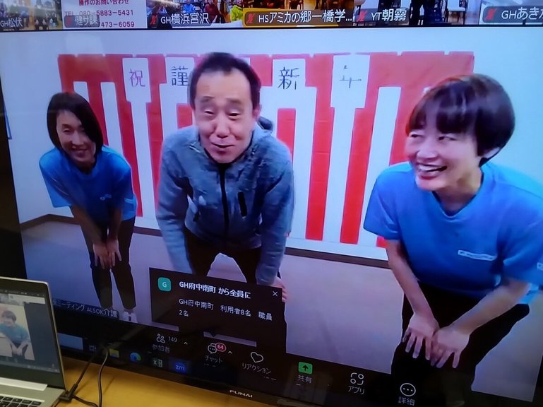 最後は画面の向こうから先生方が各施設へ呼びかけてくれたので、