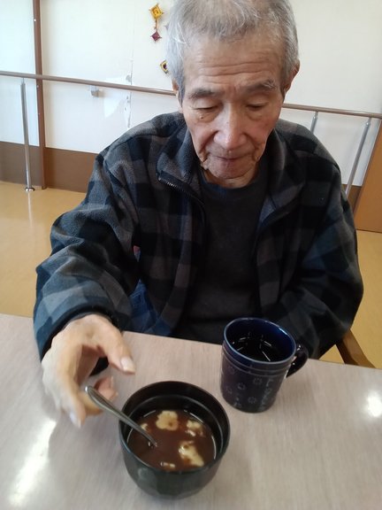ホーム長の提案で、お餅の代わりに豆腐と片栗粉を弱火で混ぜたものを作りました。