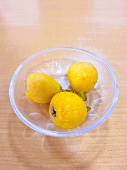 植えてあったビワの実が食べ頃になり、それを見た入居の方が「美味しそう」と呟きました。試しに職員数人で味見をしたら→味がなかった(-"-)