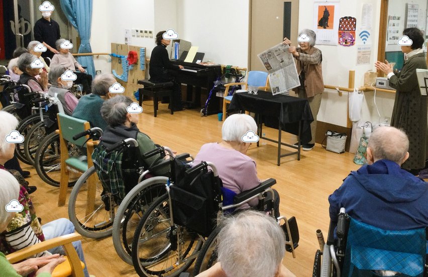 入居の方のご友人で、以前一緒に活動をされていた高尾マジックの方々が歌やマジック、リズム合唱で楽しませてくれました♪もちろんご本人様もマジックを披露してくださり、皆さまその技に見入っていました。ありがとうございました(*^▽^*)