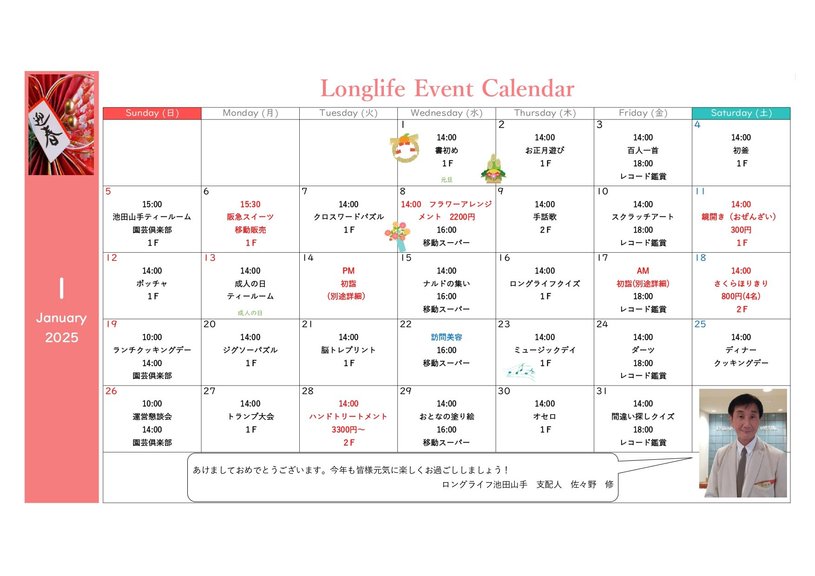 さて、2025年1月のイベントカレンダーが完成しました✨