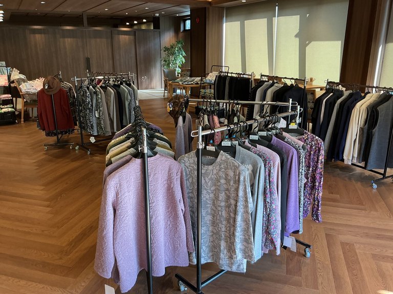 色とりどりの衣料品や小物などが展示されており、これからの季節に大活躍しそうな商品が沢山ありました♪