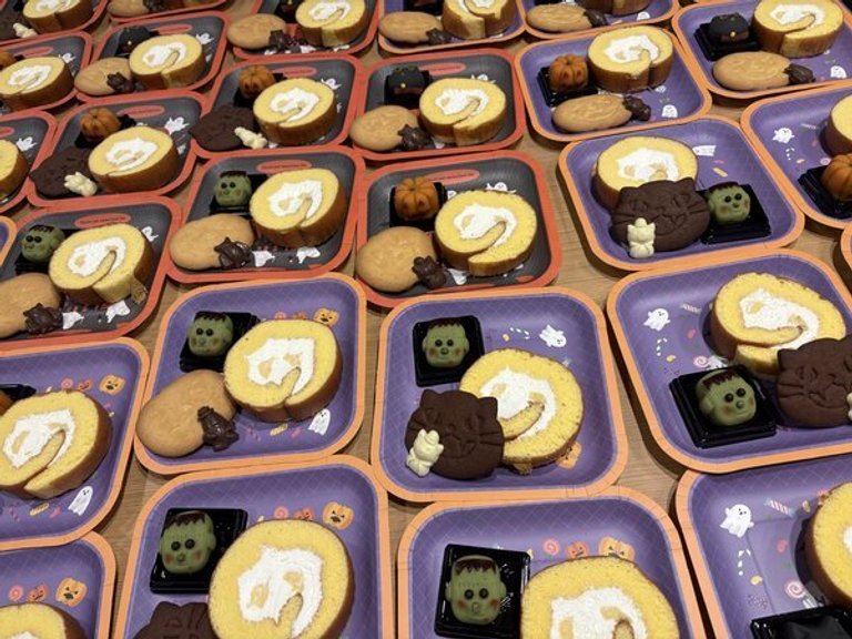 お菓子はロールケーキ、サブレ、チョコ、ハロウィンの和菓子をご用意させていただきました!