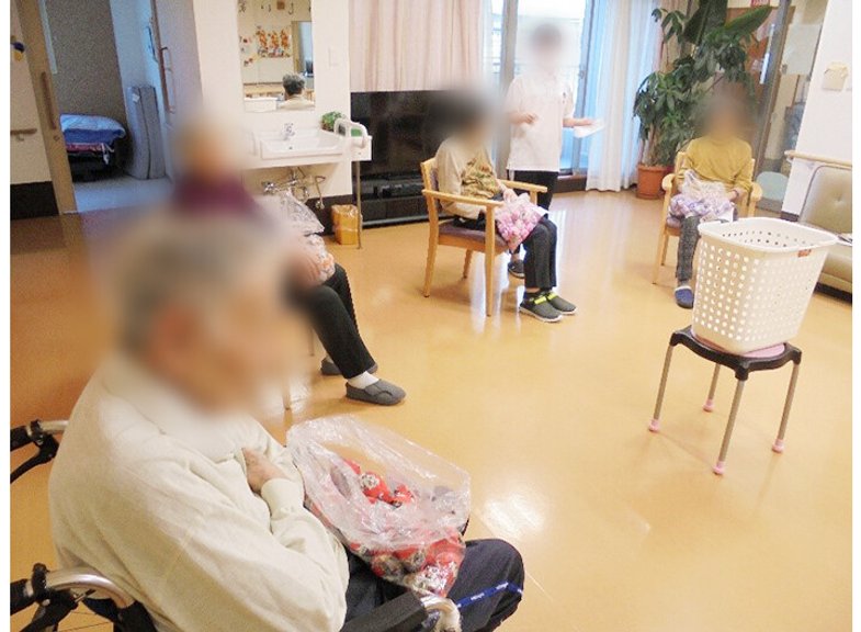 たのしい家都島の運動会は各階に分かれて風船バレーや玉入れ、ベンチホッケーなどの競技を行いました。