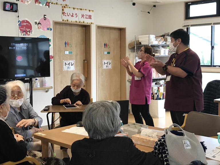 今日はスタッフが集まって、Zoom越しに「リズムタップチャレンジ」をトライ!